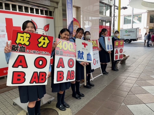 聖和のインターアクト部は、毎月一回 献血ルーム西海さんにご協力いただき、献血への呼びかけボランティアをさせていただいています。
