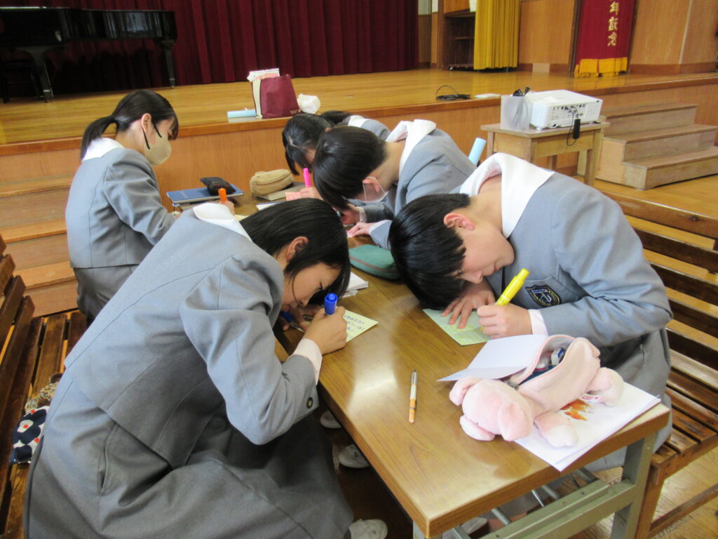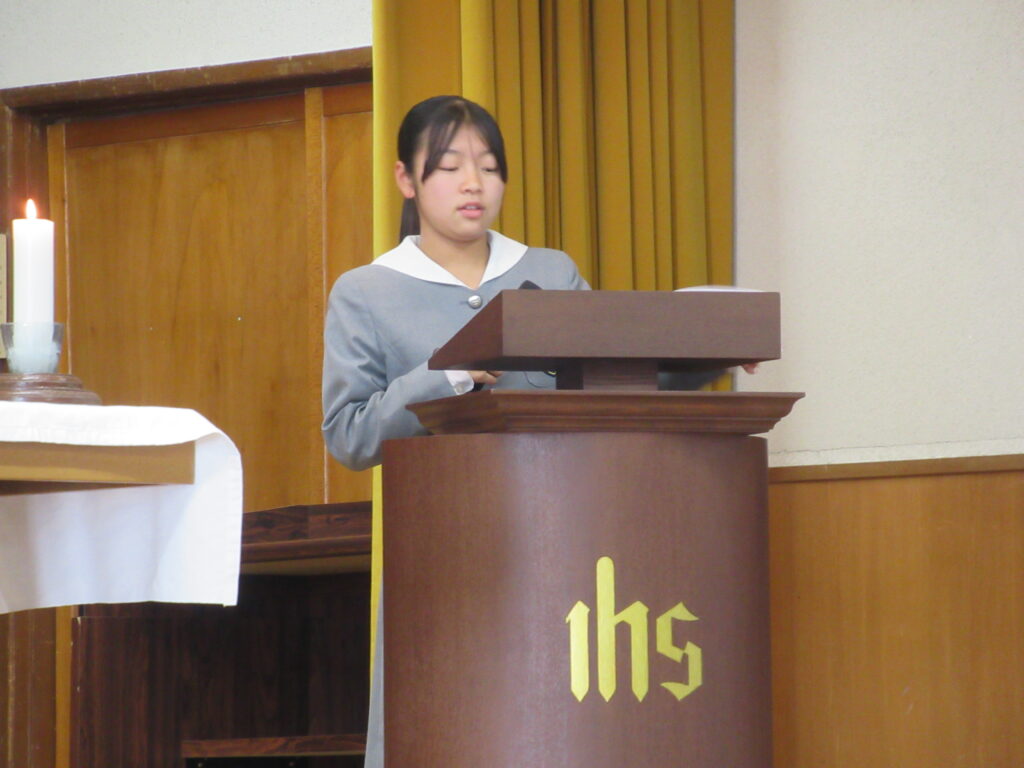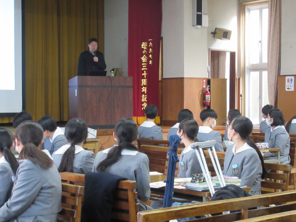 2月13日(金)に講堂にて川端神父様をお招きして、錬成会を行いました。「輝く明日のために」をテーマに神父様のお話を聞きながら、中学校生活を振り返りました。その後、自分自身の考えを班ごとに発表し、これからの人生をより良いものにできるよう、考えを深めていきました。最後には、「み言葉の祭儀」が行われ、心穏やかに祈りを捧げていました。