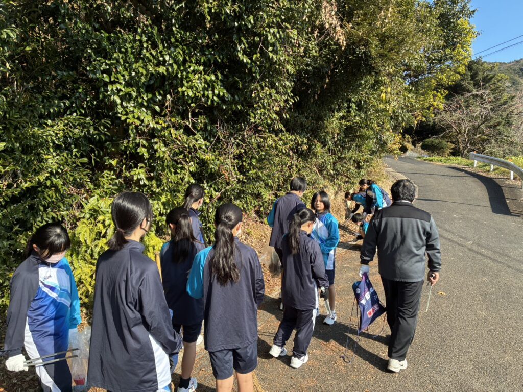 高校3学年は国道沿いを中心に、ゴミ拾いを行いました。