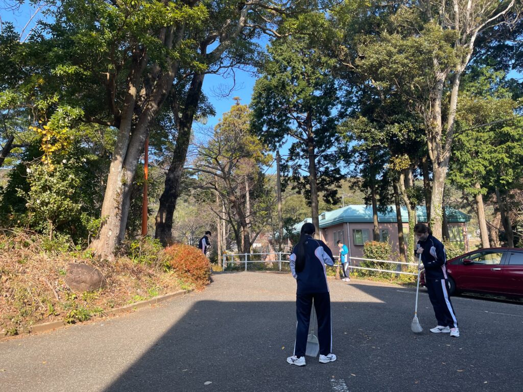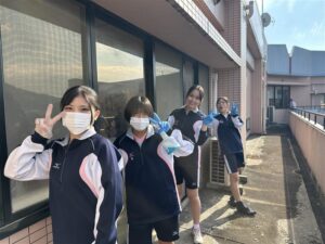 中学1,2年生は学校周辺の清掃活動