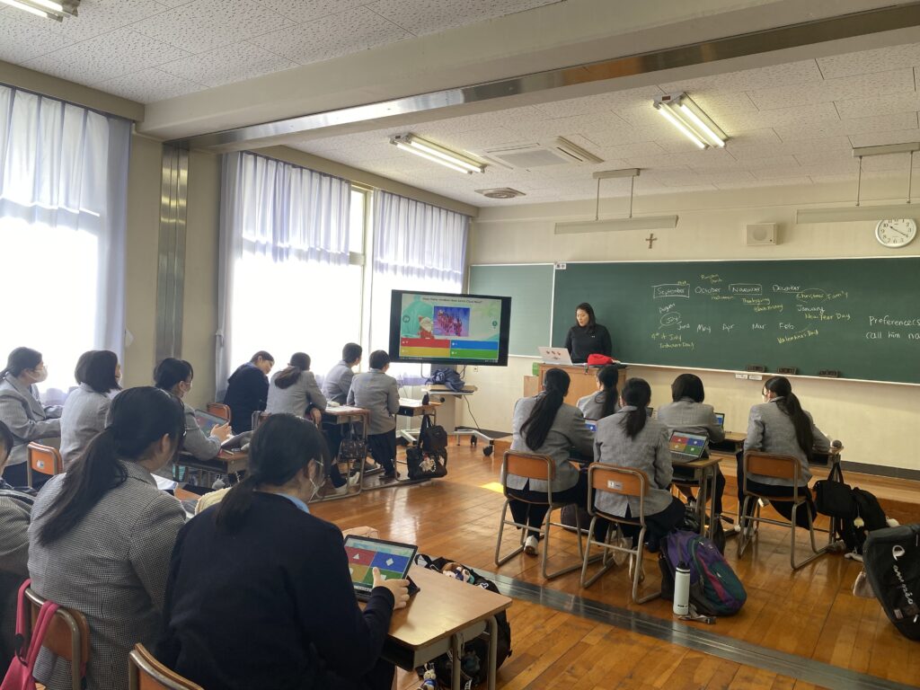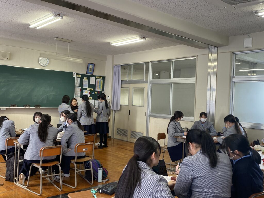 12月23日(火)2日目の本日は、アメリカのクリスマスについて先生からの英語での説明や、それを踏まえたクイズをしたり、次の日に発表をするスキットの準備をグループに分かれて行いました。日本とのクリスマスの過ごし方の違いや、クリスマスでよく見かけるキャンディケーンの色の意味など知らなかった文化を知ることができました。