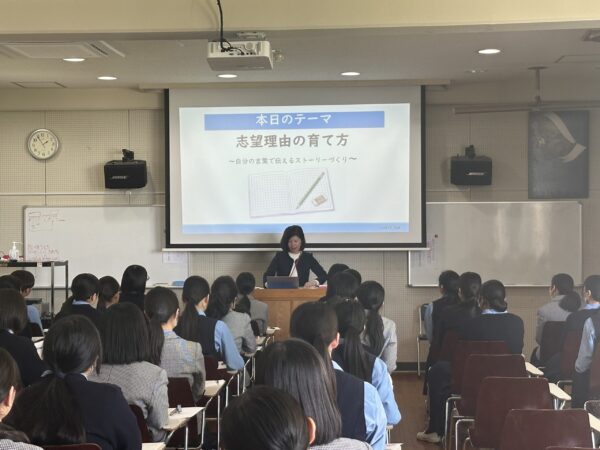 4月24日(金) 高校3学年では、キャリアコンサルタントの資格を持つ早川加恵先生をお招きし、志望理由書の書き方に関する講座を実施していただきました。