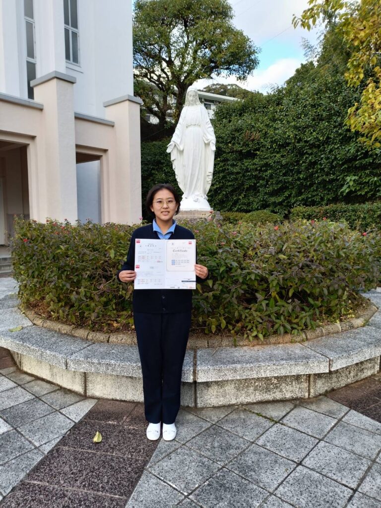 そして今年度、実用英語技能検定において、英語科3年の完山シエナさんが、見事1級に合格しました!