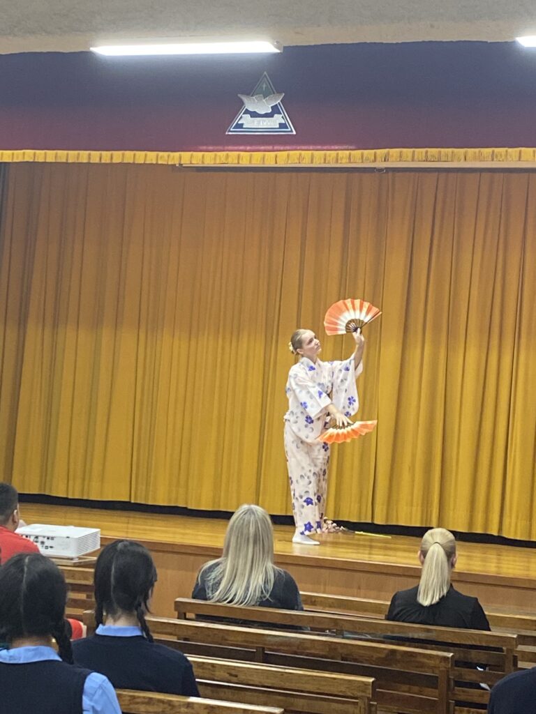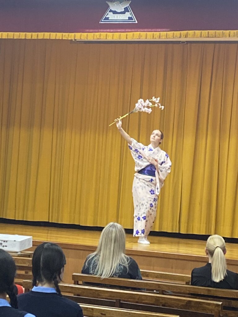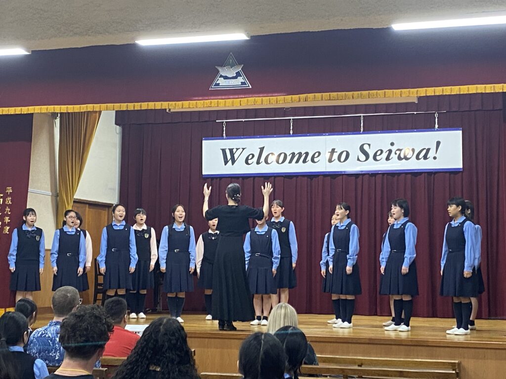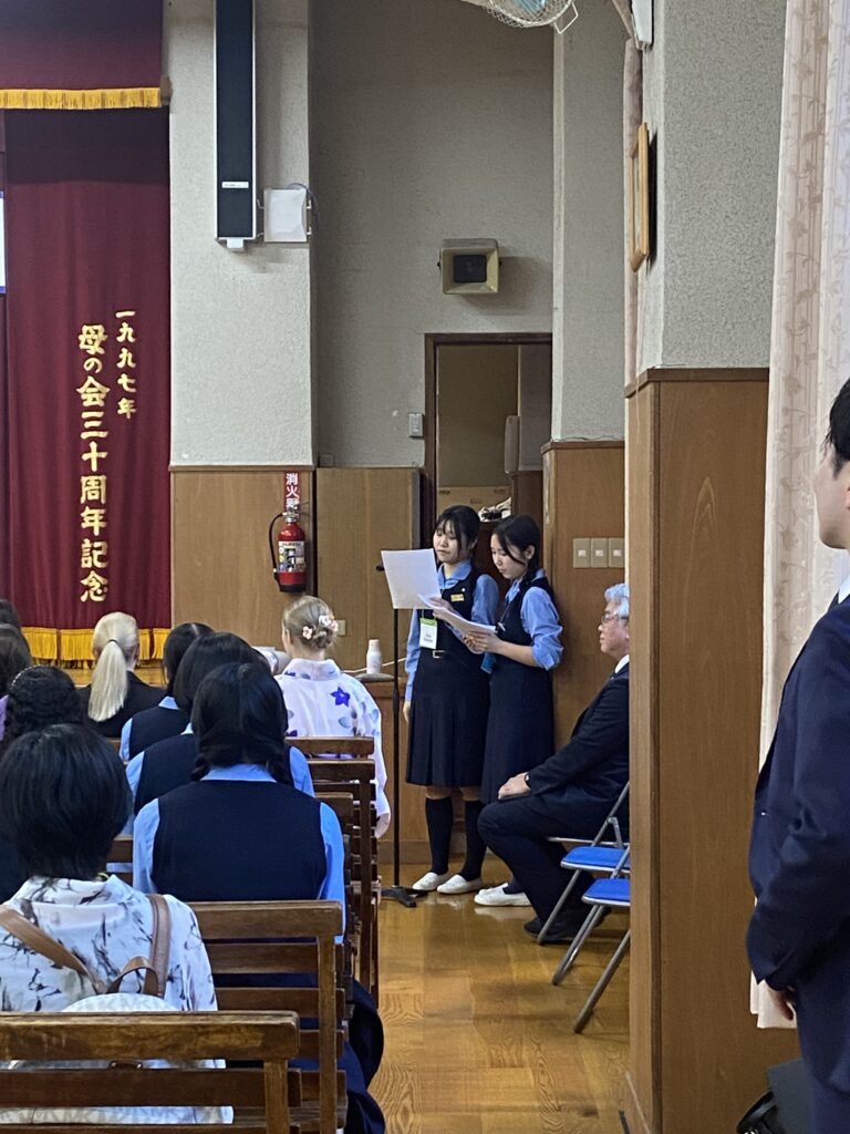 最初に講堂でオープニングセレモニーが行われました。コーラス部による歓迎のコーラスや留学生のダリアさんによる日本舞踊で、盛り上げてくれました。