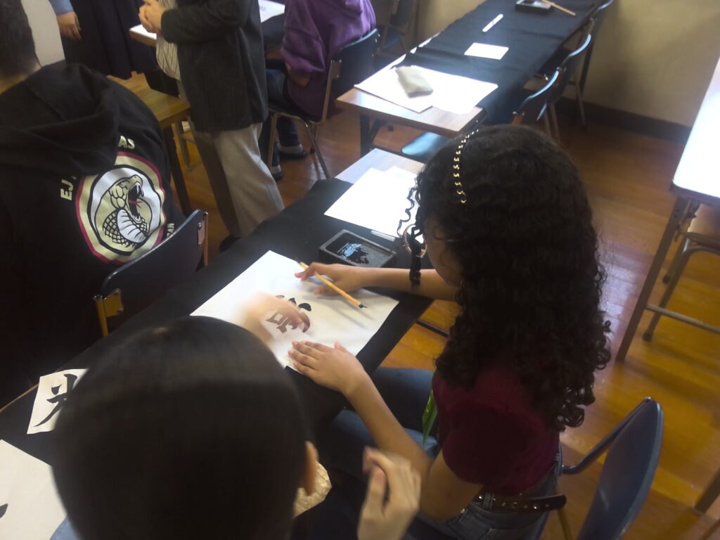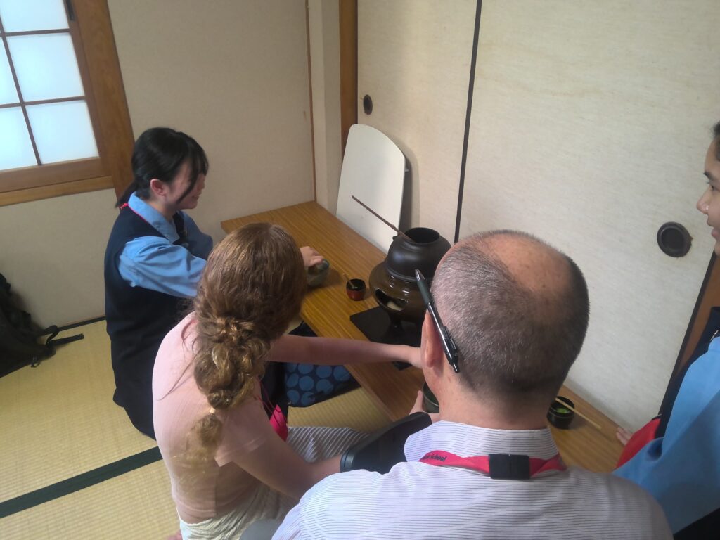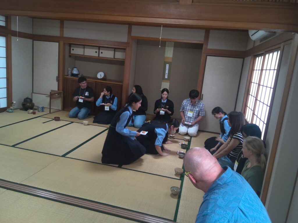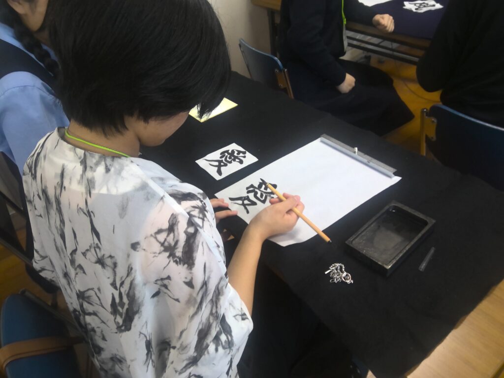 その後、華道、茶道、書道、着物の着付けといった日本文化を体験しました。生徒がバディとなって、体験のお手伝いをしてくれました。また、部活動の生徒も準備などのお手伝いをしてくれました。